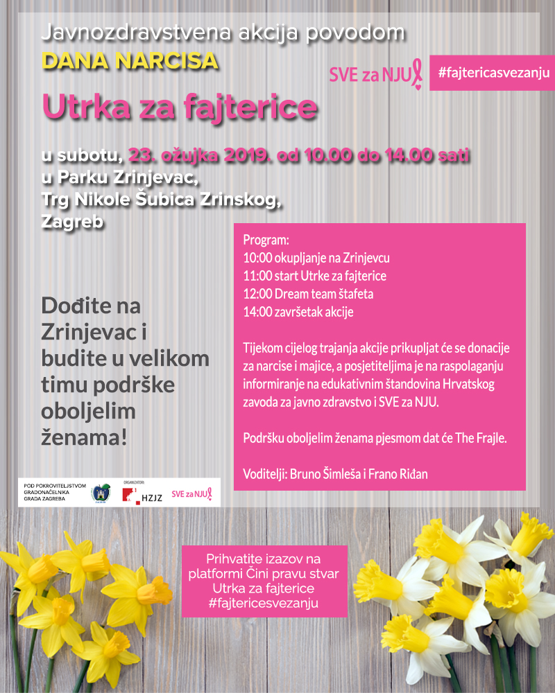 Udruga SVE za NJU u suorganizaciji sa Hrvatskim zavodom za javno zdravstvo pod pokroviteljstvom Gradonačelnika Grada Zagreba obilježava Dan narcisa javnozdravstvenom akcijom „Utrka za fajterice“ 23. ožujka u parku Zrinjevac“. Dan narcisa ima važnu ulogu u osvješćivanju javnosti o načinima i važnosti ranog otkrivanja raka dojke te promicanju Nacionalnog programa za rano otkrivanje raka dojke.