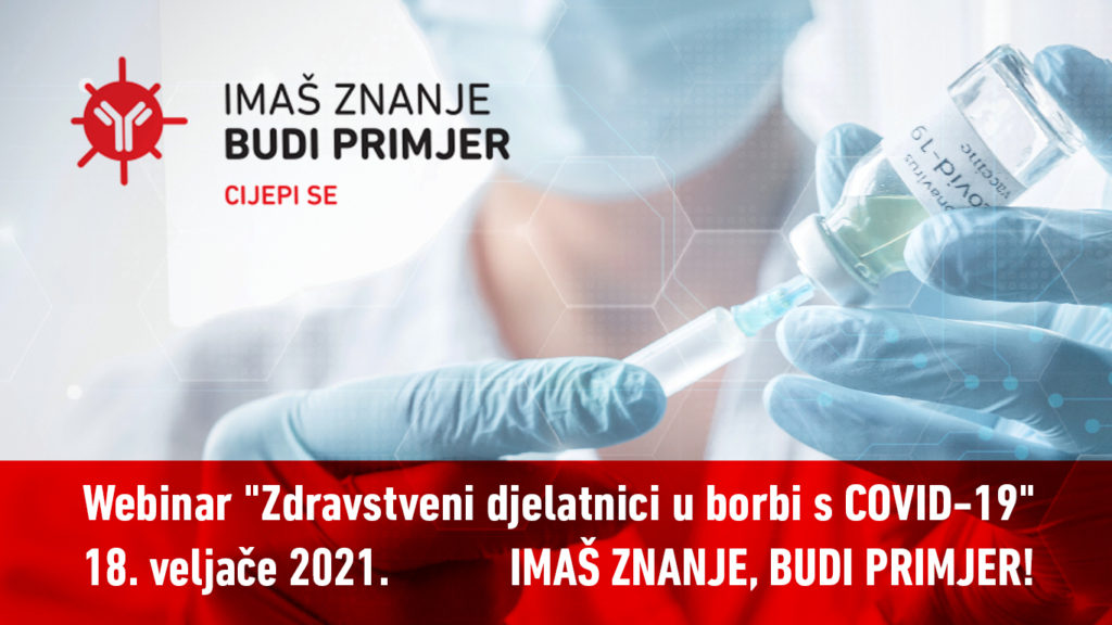 Devet komora u zdravstvu, u sklopu kampanje Imaš znanje, budi primjer! organizira webinar “Zdravstveni djelatnici u borbi s COVID- 19”. Sudjelovanje na webinaru je besplatno, a na njega se možete uključiti u četvrtak, 18. veljače u 18 sati.